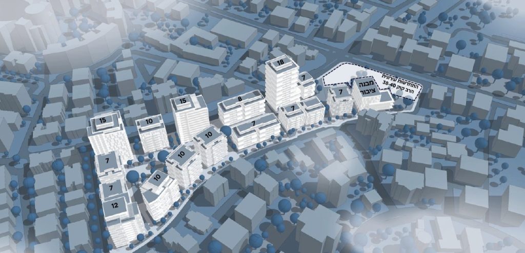 • יוקם מבנה ציבור רב-תכליתי מרשים בשטח של כ-3,000 מ”ר, המתפרס על פני 7 קומות. המבנה מתוכנן בשיטת “עירוב שימושים”) מודל “פיג’מה) המשלב שטחים בנויים לצרכי ציבור (שב”צ) יחד עם שטחים פתוחים (שצ”פ).
